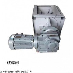 电动块料破碎阀可水平或垂直安装在卸料出口处卸料设备的入料端, 如流量调节阀或气动切断阀的前部。当物料中出现较大块状物时,可立即将其破碎,以防止这些大块物料堵塞卸料阀门的通道,保证通畅卸料。破碎器的转子上安装有放射状布置的破碎爪,拨动块状物料通过栅格并将其破碎。