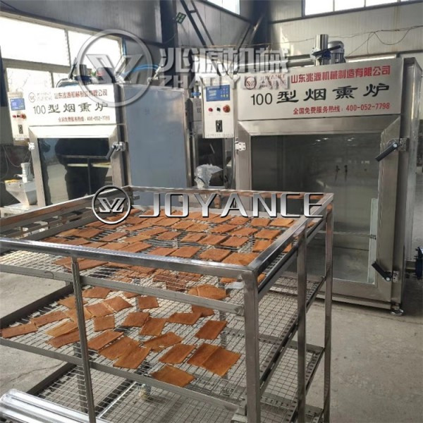 贵州豆腐干烟熏炉,烘烤豆制品的设备哪里有使制品外观具有特有的烟熏色,对加硝肉制品促进发色作用;