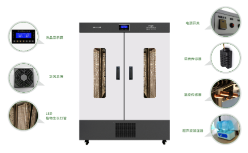 微电脑程序控制温度、湿度、光照度,可模拟白天及黑夜的温度、湿度变化,也可选择生长环境充足稳定的光源。