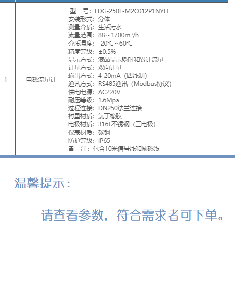 规格、型号:LDG-250L-M2C012P1NYH;