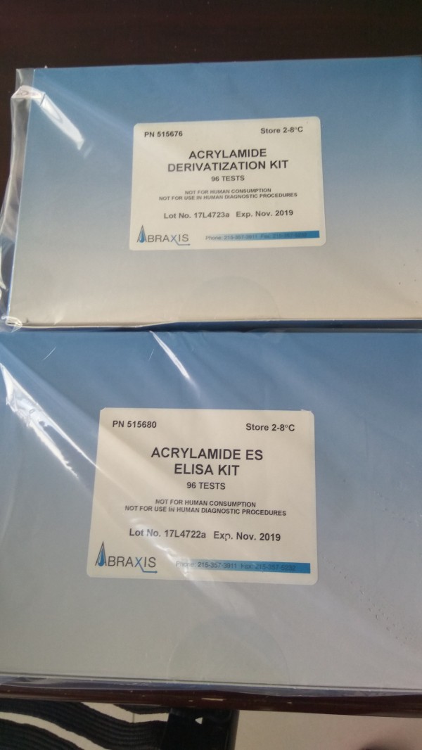 丙烯酰胺是一种常用工业化学品,全世界每年大约生产20万吨。主要用于建筑上的凝胶剂,造纸和土壤调节剂,废水处理的添加剂。丙烯酰胺作为烟中有毒成分之一,对动物生殖系统影响很大。长时间接触会对人神经系统造成损害。除了工业上用途,丙烯酰胺也是生活中蒸煮的副产物。在超过120°C的烧烤,烘烤,油炸都会引起食物中的天冬氨酸和还原糖如葡萄糖、果糖反应产生丙烯酰胺。含较多碳水化合物的食物在经过高温烧烤和烘烤时会产生大量的丙烯酰胺。在生的或煮熟的高碳水化合物食物和肉中没有发现丙烯酰胺。Abraxis 丙烯酰胺试剂盒点双样的情况下可以检测40个样,只需要很少量的样品,样品需要进行提取和净化步骤,在检测前还要进行衍生化。ABRaxis丙烯酰胺ELISA检测试剂盒,ABRaxis丙烯酰胺ELISA检测试剂盒,ABRaxis丙烯酰胺ELISA检测试剂盒。