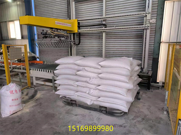 坐标机器人脱皮芝麻袋子缝包码垛生产线