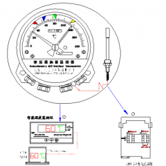 变压器油面温控器 是采用复合温升原理而设计的变压器专用仪表。适用于变压器及其它设备的温度检测和控制。该仪表具有良好的防护性能,能在户外条件下正常工作,仪表内装有四至六组可调控制开关,可分别用于变压器的冷却系统控制与信号报警、超温跳闸等。通过嵌装在一次表内的温度变送器或Pt100铂电阻,能输出与温度值对应的DC(4-20)mA电流信号或Pt100铂电阻信号,供计算机系统和二次仪表使用,实现无人电站管理。
