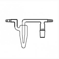 油泡通气接头29/42具微量鼓泡器的导气接头,左右两端为10mm小咀,分别与导气管和出气管连接,中间的磨口部分与反应体系连接。
