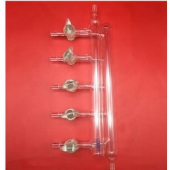 实心节门塞双排管真空气体分配器该型号双排管真空分配器为三通实心玻璃节门,配不锈钢弹簧及卡子,节门塞内有平行的双排导气孔,当节门旋转180o时,可切换通气流向,