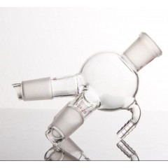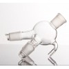 三通蒸馏接收管液体流入与流出的夹角为105o,流出口间的夹角为40o,本产品与A35系列蒸馏头及直型冷凝器配套使用,磨口29/42