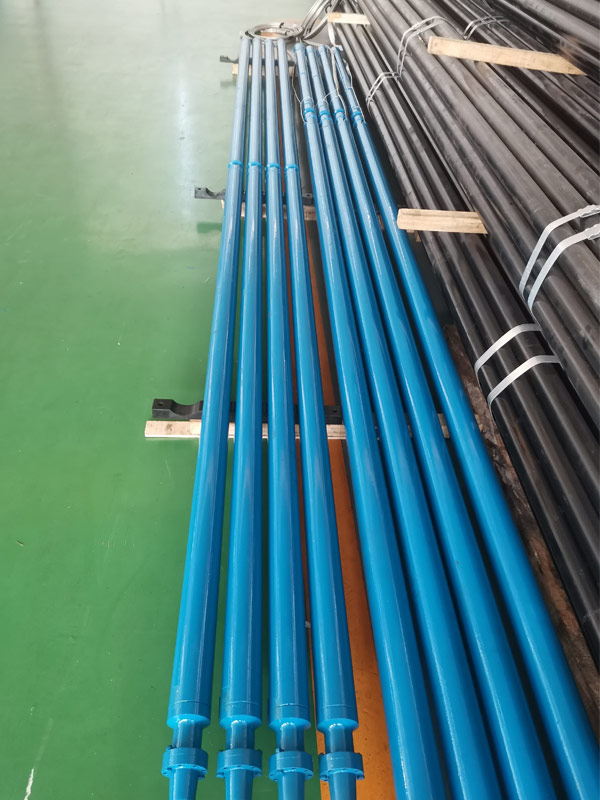 由于受到井筒套管尺寸的限制,泵的外径小,级数多,呈细长圆柱型结构,最长可达30米,采用分节制造。泵节之间用法兰连接,轴与轴用花键套连接。泵的流量决定泵型,扬程决定级数,流量与扬程之乘积决定所需功率。潜油离心泵具有高泵效,扬程高,排量范围大(30—1000m3/d),油井适应范围宽等特点。
