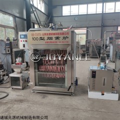 青岛老火腿烟熏炉,大火腿全套加工设备特意针对了环保问题进行了一个改进,主要适应于加工红肠、腊肉、腊肠、熏鸡、熟食、豆腐干等。操作也非常的方便,还要蒸煮,烟熏,烘烤上色等功能,适应于多种产品,解决了传统工艺带来的烟雾量大的环保问题。
