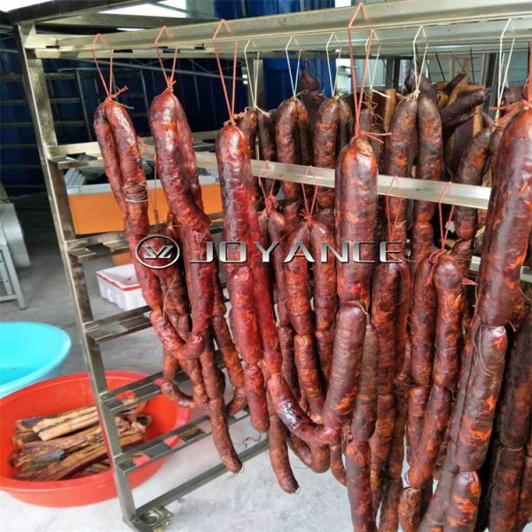 小型50型烟熏炉,香肠烘干烟熏专用机器具有烘烤、干燥、蒸煮、冷熏、热熏、冷却等功能,用户可根据产品加工工艺的不同要求,灵活选择适当的工艺程序,实现自动控制,达到熟化和灭菌之目的。