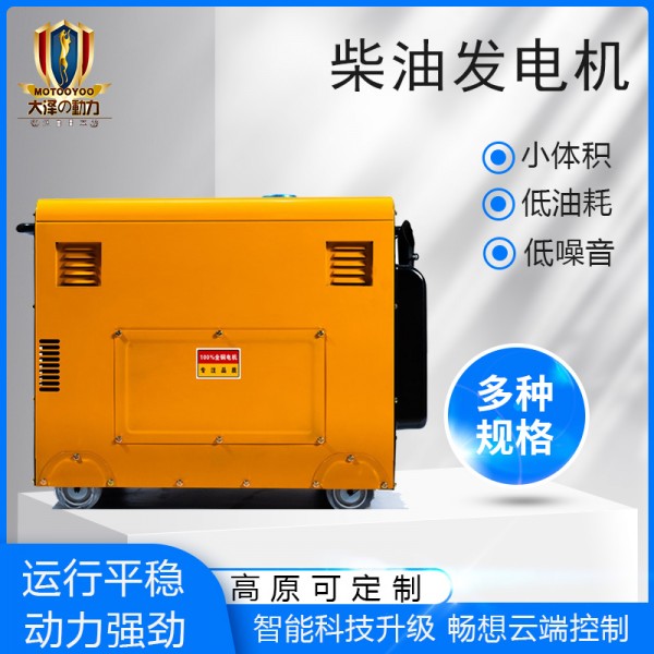 户外应急7kw柴油发电机 大泽动力发电机组除了具有电源清洁、安静和的优势外,还具有的过载和低油量保护。的节气门可根据负载自动改变发动机转速,因而更节油,噪音更小。相对于传统发电机组,此款机组节油20%-40%的燃油,因而运行时间更长。大泽动力系列不同输出的数码发电机组供您选择,满足您各种应用需求。
