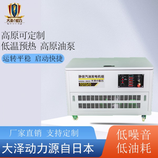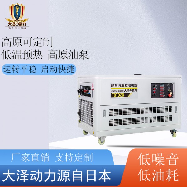 20kw汽油发电机经济实用 动力性、经济性、稳定性、可靠性、可操作性和低廉的运行及维护成本,同时加之大泽完备的-联保的售后服务及各网点上充足的配件供应。大泽提醒:发电机组运行时先将面板上的断路保护开关关闭,待机器运行3分钟后再打开给设备供电。