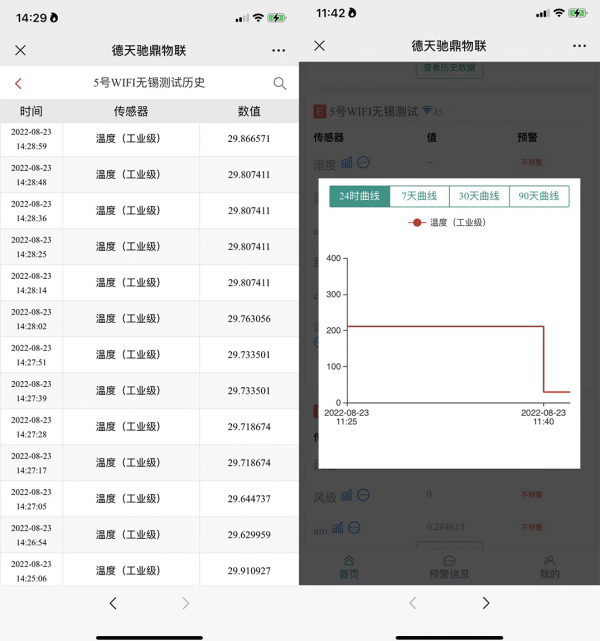 物联网控制器与其配套设备通过国家标准高低温实验,可以在-45度到+80度稳定运行,实验期间使用WIFI与4G通讯方式数据传输依旧稳定快速。
