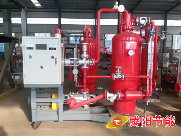 5.结构简单:集闪蒸罐、冷凝水快排装置、压力平衡装置、液位变器、除污器、汽蚀削除器、蓄水箱为一体。一般情况蓄水箱平衡装置压力设备在0.1MPa以下,系统运行自动启闭、自动抱警、自动调压及冷凝水泵自动切换等一系列程序控制。设备整体性好、安装维修方便。