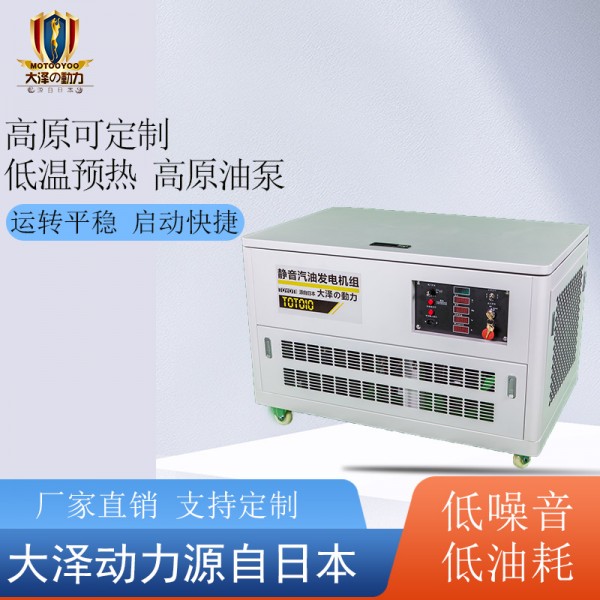 12kw静音汽油发电机便携式 大泽动力微型汽油发电机组的,是体积、容量较小,输出功率般在数百瓦以下的电机和用途、性能及环境条件要求的电机。全称微型特种汽油发电机,简称微电机。常用于控制系统中,实现机电信号或能量的检测、解算、放大、执行或转换等功能,或用于传动机械负载,也可作为设备的交、直流电源。