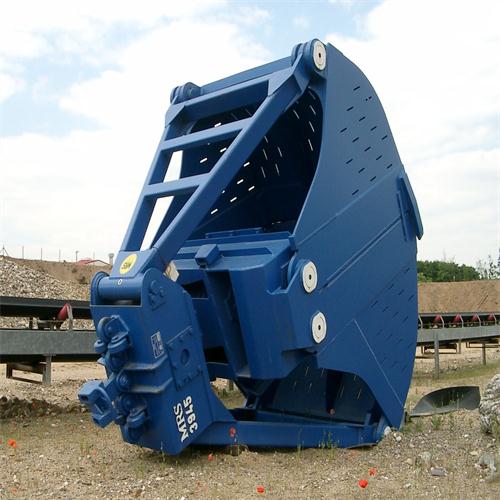 MRS GREIFER液压抓斗没有自己的驱动装置。挖掘机的液压驱动器提供动力。它直接连接到挖掘机的悬 架和液压供应管路。与电机抓斗类似,闭合力通过方便的杠杆比和适当的自重传递到物料。唯一的区别 是液压驱动不包括在抓斗中。传递力的另一种方式是与挖掘机的相对刚性连接。