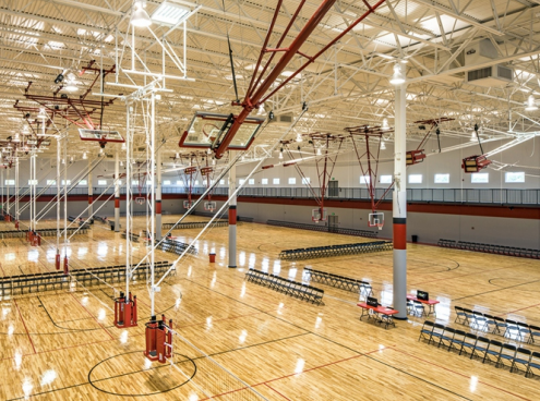 lingxian凯锐悬挂式排球柱系统采用立柱制成,这些立柱牢固地悬挂在空中,可以在几分钟内以电动方式升高和降低整个系统, 快速转换场地,并避开其他球场活动。