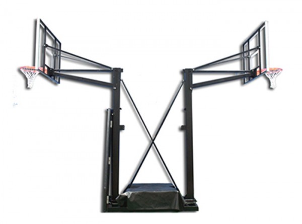 双立柱双篮板,臂展1.8m,配高性能铝框矩形玻璃篮板(AFG42)、弹性篮筐(Dunk-Flex)。安全玻璃篮板、分离式弹性篮圈、1.8m伸展延伸臂、安全防护套、455Kg配重