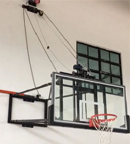 采用电动驱动系统和控制系统实现球架向上折叠或展开;可选配高度调节器系统,实现篮圈高度调节,满足不同用户需求。