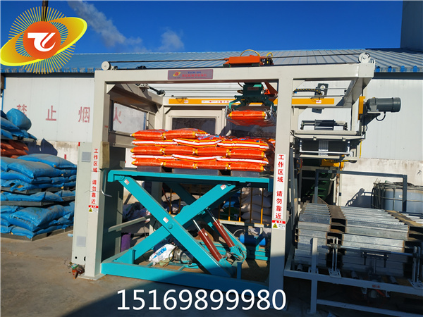 全自动液压升降高位码垛机全自动高位码垛机是一种能够节省企业生产线许多劳动力的设备,它可以用来码垛颗粒以及粉末等,在食品、饲料、化肥、面粉、水泥、化工、建材等行业都有大量使用