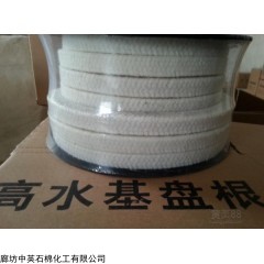 高水基盘根由高质量苎麻纤维, 内、外涂石墨,且充分浸润特殊的润滑油方形编织而成。突出的优点是磨擦系数极低,不磨轴,防腐蚀。