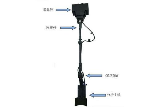 6.APP:支持APP,可替代手动操作设备结构及组成:伸缩连接杆,采集单元,OLED显示屏,分析单元。