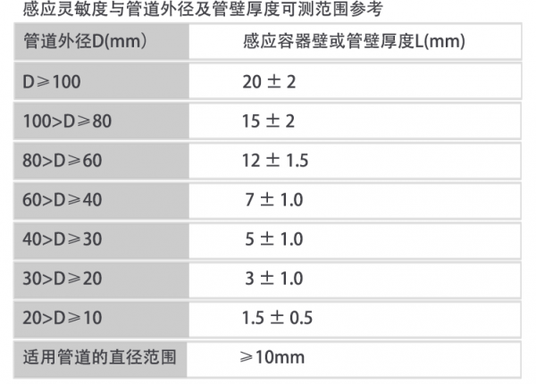 厚度可达 20mm;适用于各种曲面、弧形、圆柱形的容器或管道的液位检测。