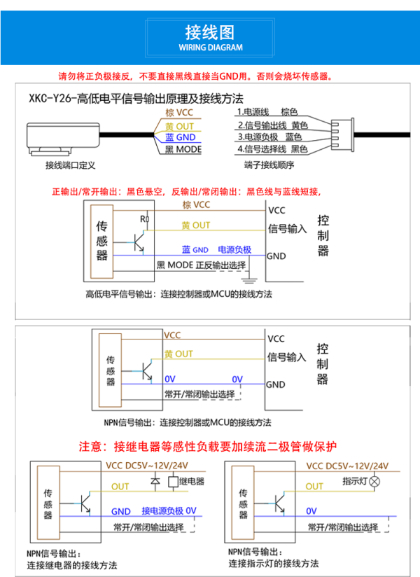 电压范围宽(5~24V),适合连接各种电路及产品应用