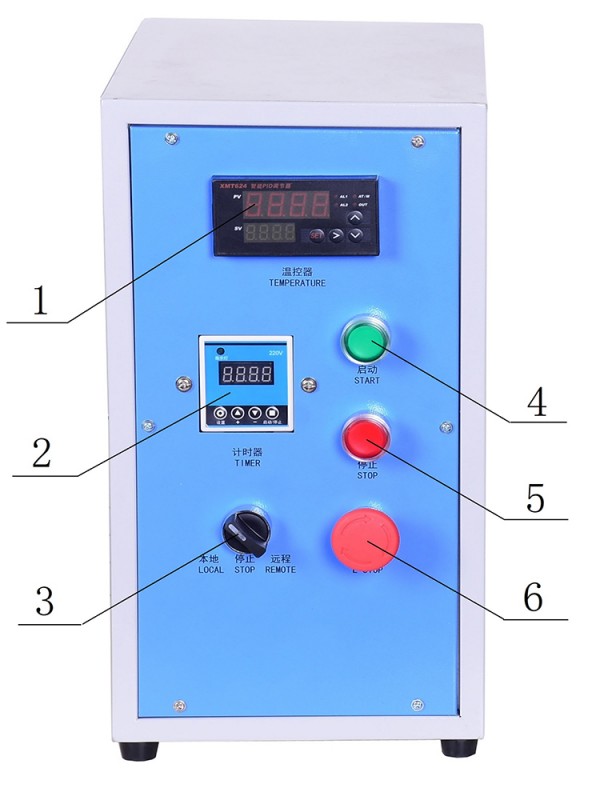 1——温控表 2——计时器 3——“本地、停止、远程”选择旋钮