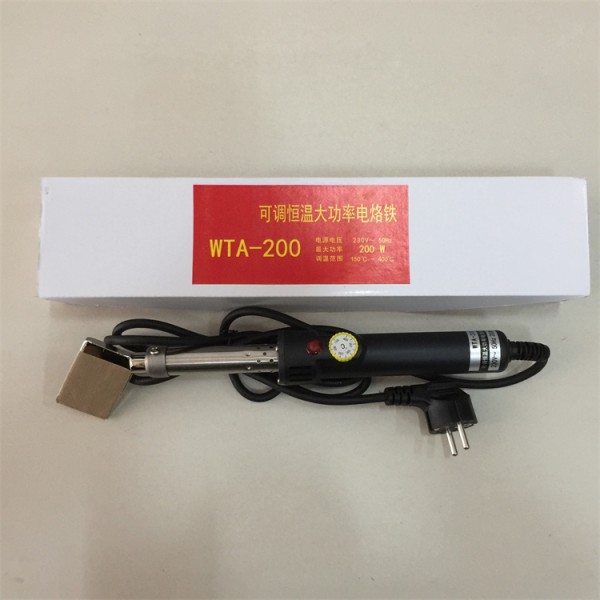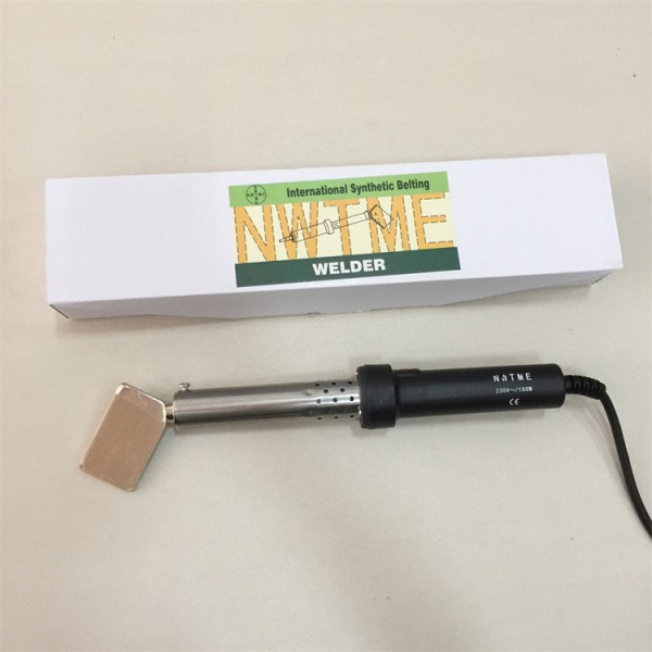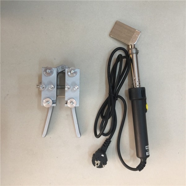 2、 把要接的皮带放进加热好的烙铁片中间,握紧夹钳把手部分加热30秒左右,使皮带两端融化到皮泥程度,将夹钳取出(注意此时把手不要松开),然后把夹钳左侧的螺丝拧紧固定好。