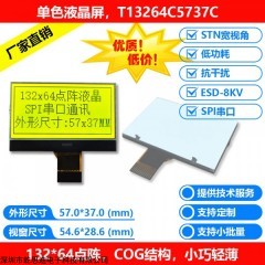| 132*64 | T13264C5737C | 57.0*37.0 | 54.6*28.6 | 2.4寸,低功耗,平板背光可配铁框 | SPI/插接 | 常备现货 | |