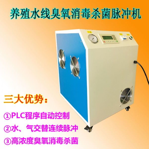 同盛牌养殖场脉冲水线清洗机的组成部分:由汽水混合器,臭氧发生器,潜水泵和空气压缩机组成,臭氧发生器产生的臭氧和水以特定的比例混合,形成臭氧水,在空气压缩机的作用下,利用臭氧水对水线进行脉冲式冲洗。