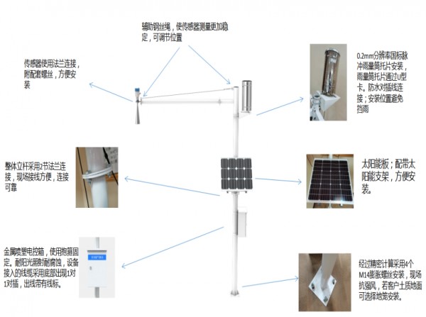1、接翻斗式雨量计,可采集总雨量、瞬时雨量、日雨量、当前雨量。