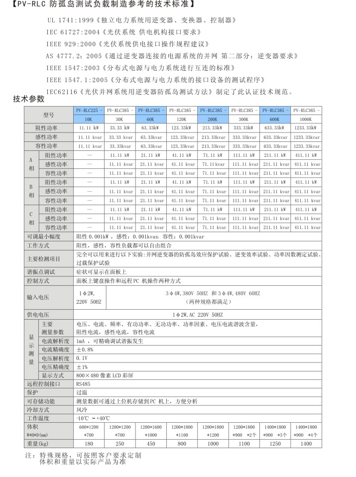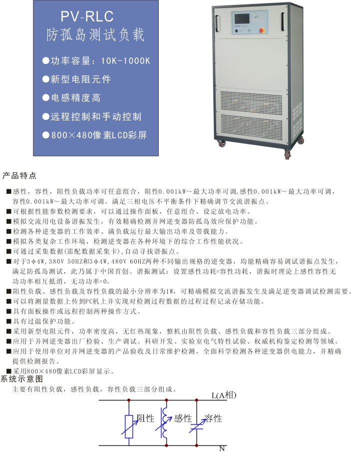PV-RLC 防孤岛测试负载