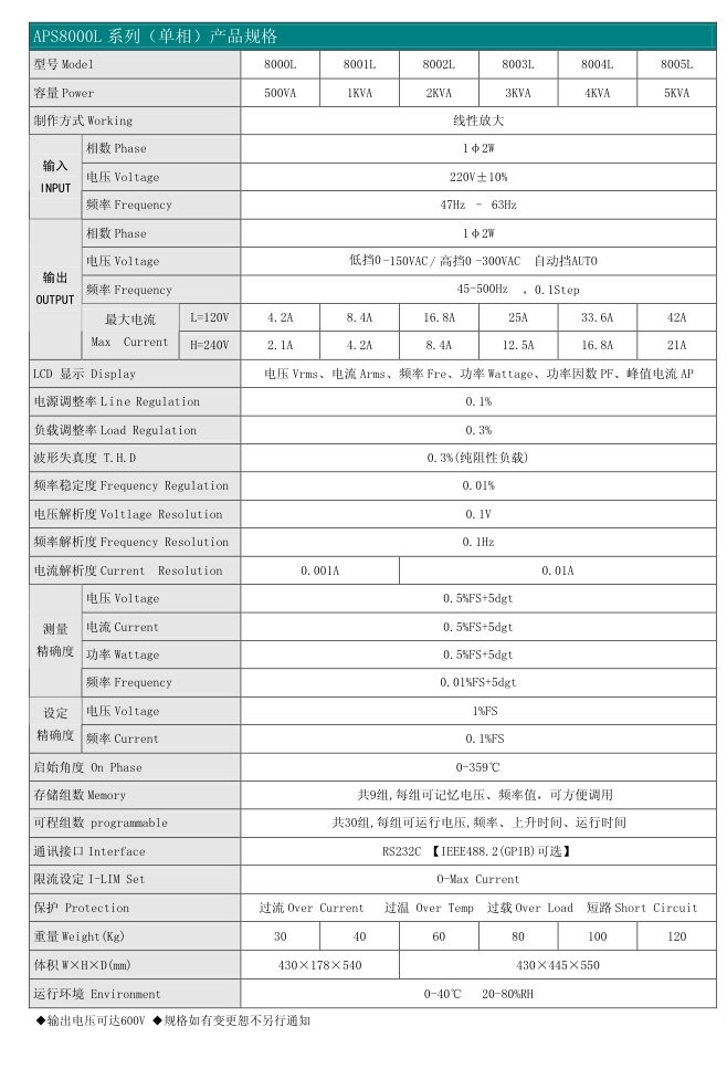 APS8000L 线性式可编程交流电源