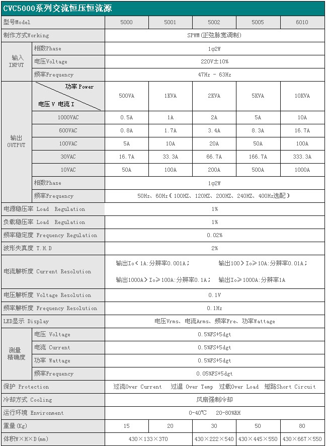50Hz、60Hz(100HZ、120HZ、200HZ、240HZ、400Hz选配)可以供变压器,线圈等作层间耐压测试。