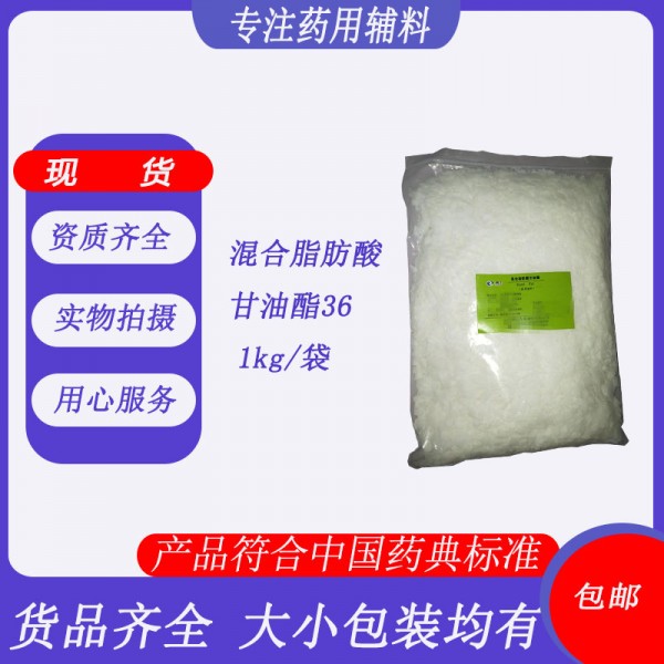 本品为C8~C18饱和脂肪酸的甘油一酯、二酯与三酯的混合物。 【性状】本品为白色或类白色的蜡状固体;具有油脂臭。 本品在三氯甲烷或乙醚中易溶,在石油醚(60~90℃)中溶解,在水或乙醇中几乎不溶。 熔点本品的熔点(通则0612第二法)为:34型33~35℃;36型35~37℃;38型37~39℃;40型39~41℃。 酸值 本品的酸值(通则0713)应不大于1.0。 羟值 本品的羟值(通则0713)应不大于60。 碘值 本品的碘值(通则0713)应不大于2.0。 过氧化值 本品的过氧化值(通则0713)不大于3。 皂化值本品的标示皂化值应为215~260,皂化值(通则0713)应为标示皂化值的95%~105%。 【鉴别】取本品约l.0g,加三氯甲烷10ml使溶解,作为供试品溶液。照薄层色谱法(通则0502)试验,吸取供试品溶液5μl,点于硅胶G薄层板上,以三氯甲烷-丙酮(20:0.5)为展开剂,展开,展开距离应大于12cm,晾干,置碘蒸气中显色后,立即检视,应至少显四个斑点。 【检查】碱性杂质 取本品2.0g,加乙醇1.5ml与乙醚3.0ml使溶解,在40℃水浴中加热溶解后,加溴酚蓝指示液0.05ml,用盐酸滴定液(0.01mol/L)滴定至溶液显黄色,消耗盐酸滴定液(0.01mol/L)的体积不得过0.15ml。 灰分 取本品,依法检查(通则2302),遗留残渣不得过0.05%。 重金属 取本品1g,加饱和氯化钠溶液20ml,置水浴上加热溶化,然后置冰浴中冷却,滤过,滤液移至50ml纳氏比色管中,加稀醋酸2ml与水适量使成25ml,依法检查(通则0821第一法),含重金属不得过百万分之十。 【类别】药用辅料,栓剂基质和释放阻滞剂等。 【贮藏】密闭,在阴凉处保存。 注:本品触摸时有滑腻感。