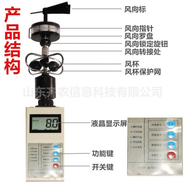 本仪器采用低功耗设计并采用液晶(LCD)显示,大大减少了仪器的功耗。而且带有数据锁存功能,便于读数,在风向部分采用了自动定北装置,测量时无需人工对北,简化测量操作。仪器具有体积小、重量轻、功能全、耗电省、字符大、显示直观、方便携带等的优点,可广泛用于农林、环境、海洋、科学考察等领域测量大气的风参数。也完全可满足中小学自然科学教学的要求。