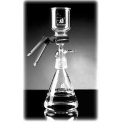 过滤瓶包括:滤杯(300ml)、烧结滤头、三角集液瓶(1000ml)、铝制夹、胶管。