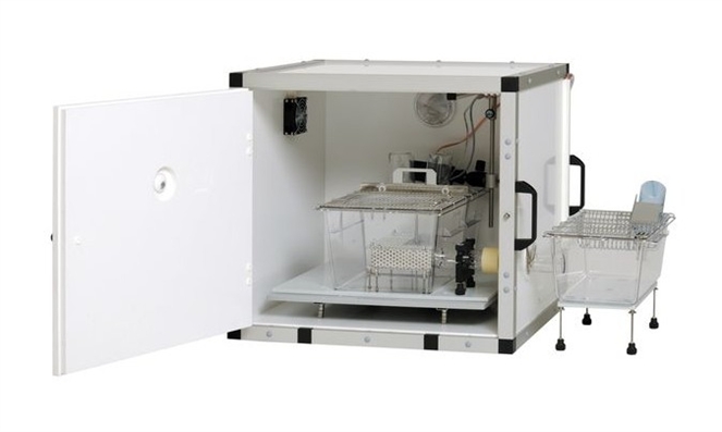 自动化声刺激行为分析箱是一个创新性的智能解决方案,它可以直接与生活笼相连并对单个动物进行无干扰的声音条件刺激实验。自动化声刺激行为分析箱被放置于一个隔音箱内,然后再与外围的生活笼连接。除此之外还可以连接其他外围设备,例如一体化智能行为学分析系统-IntelliCage等。