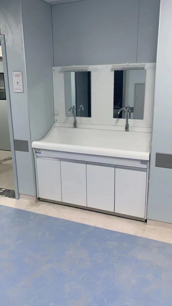 高分子洗手池材质特点:采用高分子材料一次吸塑成型,出水方式有:感应式、膝控式、脚踏式和手动开关,一台洗手池可客户要求选择单一出水方式或多种出水方式。洗手池分高背和低背,高背总高度1800mm,配有美容镜,照明灯,皂液器,可按客户要求配置烘手器和热水器。低背板无配置。