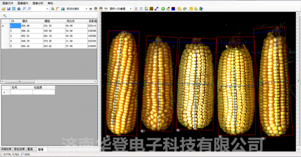 软件可对图片玉米的散粒、整穗、截面进行分析,玉米考种分析及千粒重仪系统是根据图像识别原理来实现自动分析的。本配置专用于玉米籽粒、果穗、截面的精确考种分析(紫黑色玉米的果穗不能测)成像特性:扫描分析的种粒直径0.5~20mm。适用分析工作区尺寸:扫描仪A3幅面(431.8mm×301mm),可同时成像分析10个玉米果穗、35个玉米截面、1000粒左右的玉米籽粒。