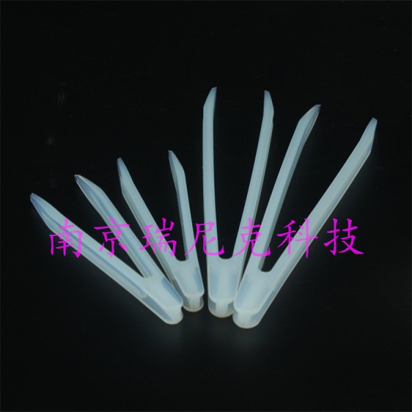 PFA镊子:耐高低温性(可使用温度-200℃~+260℃)、耐腐蚀、表面不粘性,用于苛刻条件下夹取太阳能硅片、金属颗粒、块状药品、锂片等。