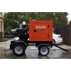 移动柴油水泵驱动机通过泵轴带动叶轮旋转产生离心力,在离心力作用下,液体沿叶片流道被甩向叶轮出口,液体经蜗壳收集送入排出管。液体从叶轮获得能量,使压力能和速度能均增加,并依靠此能量将液体输送到工作地点。在液体被甩向叶轮出口的同时,叶轮入口中心处形成了低压,在吸液罐和叶轮中心处的液体之间就产生了压差,吸液罐中的液体在这个压差作用下,不断地经吸入管路及泵的吸入室进入叶轮中。