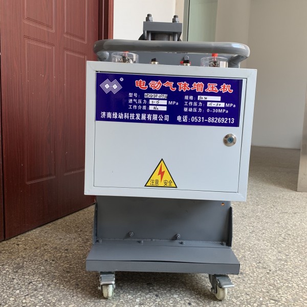 一般氮气瓶直接给蓄能气充氮时,其最高充气(氮)压力为13.5MPa,如果蓄能器内所需预充氮气压力超过13.5MPa时,用直接充气法就无法达到蓄能器的充气要求,我公司生产的GPSQCDZ型电动氮气增压泵(充氮小车,蓄能器充氮车,充氮设备,氮气增压设备)就能满足高压蓄能器充装高压氮气的要求。