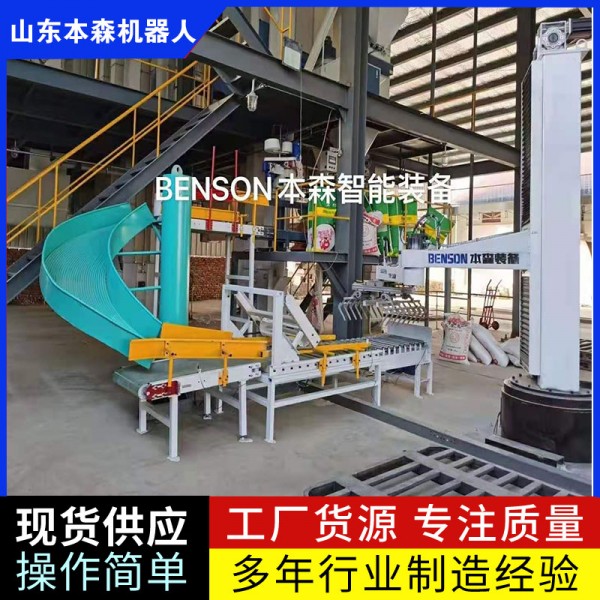 山东本森码垛机器人替代人力劳动,节省码垛成本和管理成本,使仓库堆包现场井然有序,改善了劳动环境,提升了企业形象。