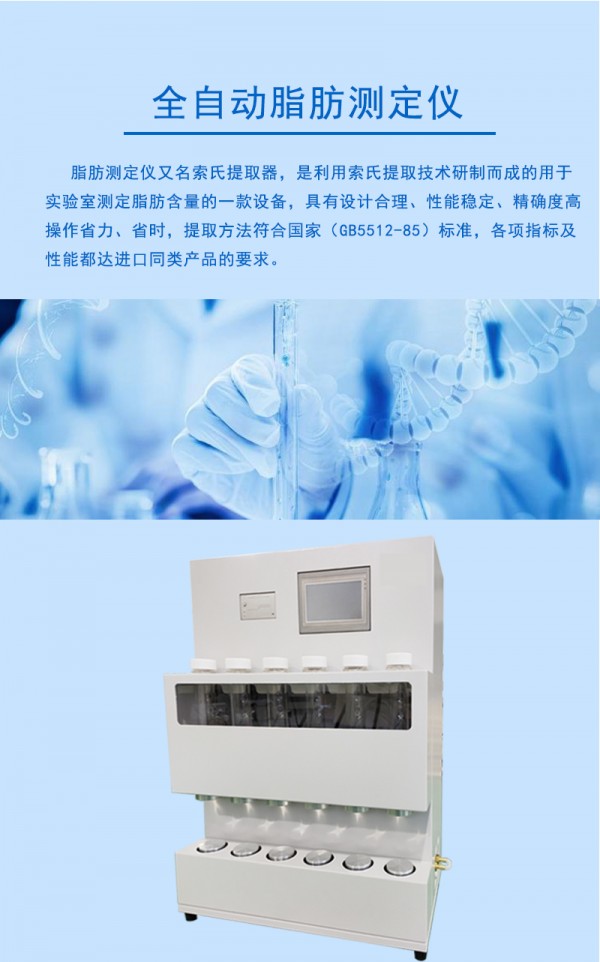 1. 上海秉越全自动脂肪测定仪,完全实现自动化,仪器集控温、抽提(索氏抽提,热抽提,索氏热抽提,连续流动,索氏标准热萃取)、冲洗、溶剂回收、预干燥、计算及打印于一体