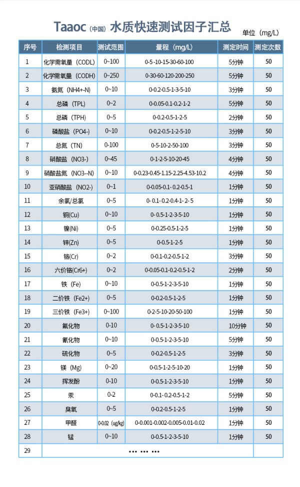 涛克 水质快速检测包COD快速测试包0-250mg/l应用领域: