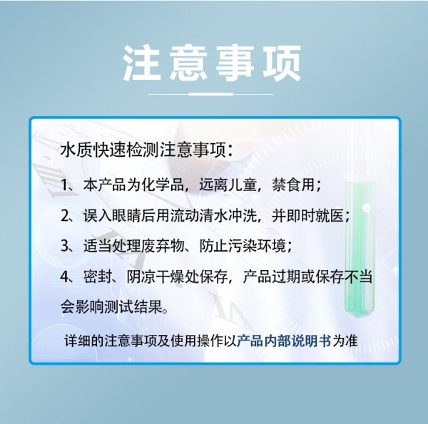 1、本产品使用少量化学药品,使用前请认真阅读说明书;