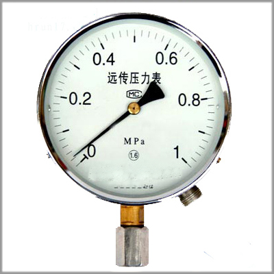 YTZ-150电阻远传压力表用途说明: 电阻远传压力表适用于测量对铜及铜合金不起腐蚀作用的液体、蒸汽和气体等介质的压力。因为在仪表内部设置—滑线电阻式发送器,故可把测值以电量值传至远离测量点的二次仪表上,以实现集中检测和远距离控制。此外,本仪表并能就地指示压力,以便于现场工艺检查。 结构原理: 本仪表由一个弹簧管压力表和一个与被测压力成一定函数关系的滑线电阻式发送器等组成。仪表机械部分的作用原理与一般弹簧管压力表相同。由于电阻发送器系设置在齿轮传动机构上,因此当齿轮传动机构中的扇形齿轮轴产生偏转时,电阻发送器的转臂(电刷)也相应地得以偏转,由于电刷在电阻器上滑行,使得被测压力值的变化变换为电阻值的变化,而传至二次仪表上,指示出一相应的读数值。同时,一次仪表也指示相应的压力值。 主要技术指标: