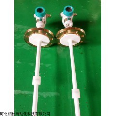 工作原理,当脉冲信号随着波导丝传递的时候,遇到带有磁性的浮子,两个磁场形成螺旋形磁场它作用于波导丝上并产生超声扭转波,然后扭转波返回传到传感线圈时被转换成横向感应力,通过磁场发生变化之后产生感应电压。脉冲信号和扭转波产生时间差来确定浮子的位置,按照时间差的大小数值显示液面的高低,通过信号转化器进行比例输入,从而检测出的液位位置变化。